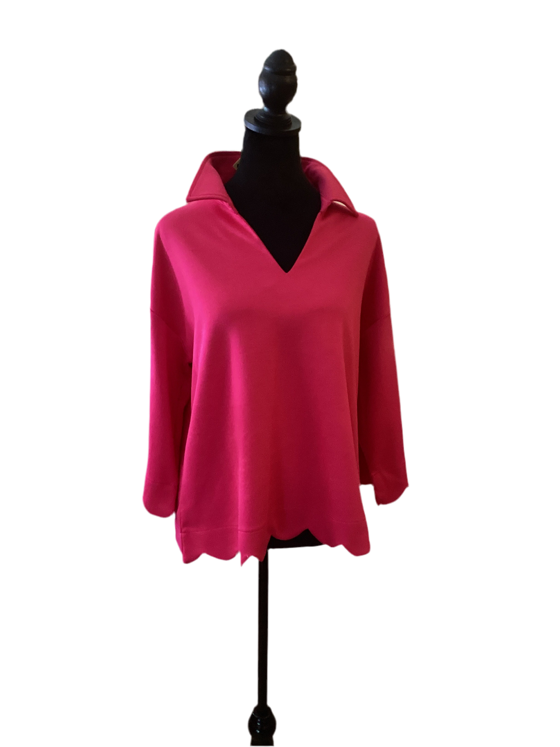 Jodifl Hot Pink v-neck top w/ scalloped hem and cuff