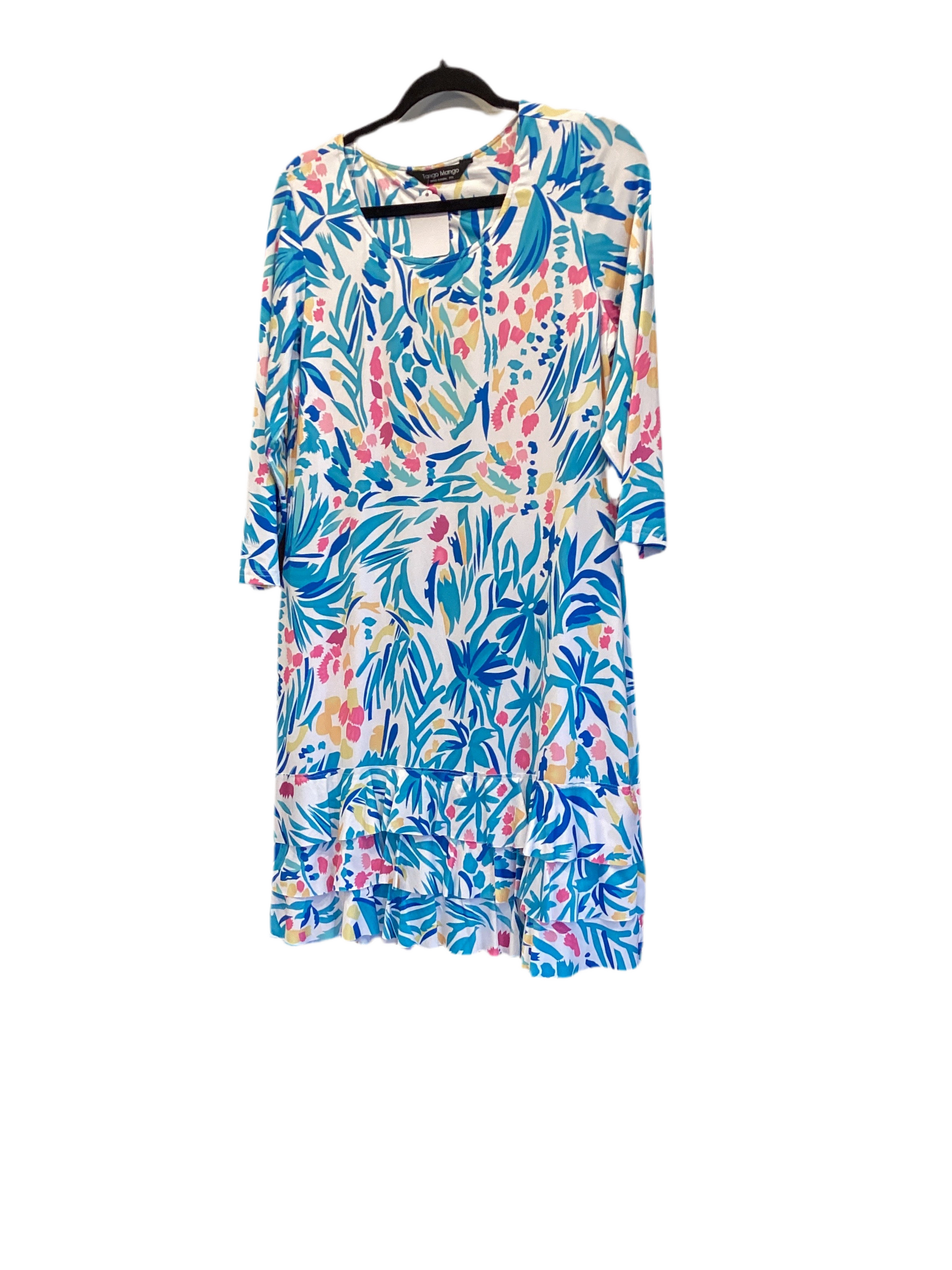Tango mango teal,blue print 3/4 sleeve ruffle bottom dress