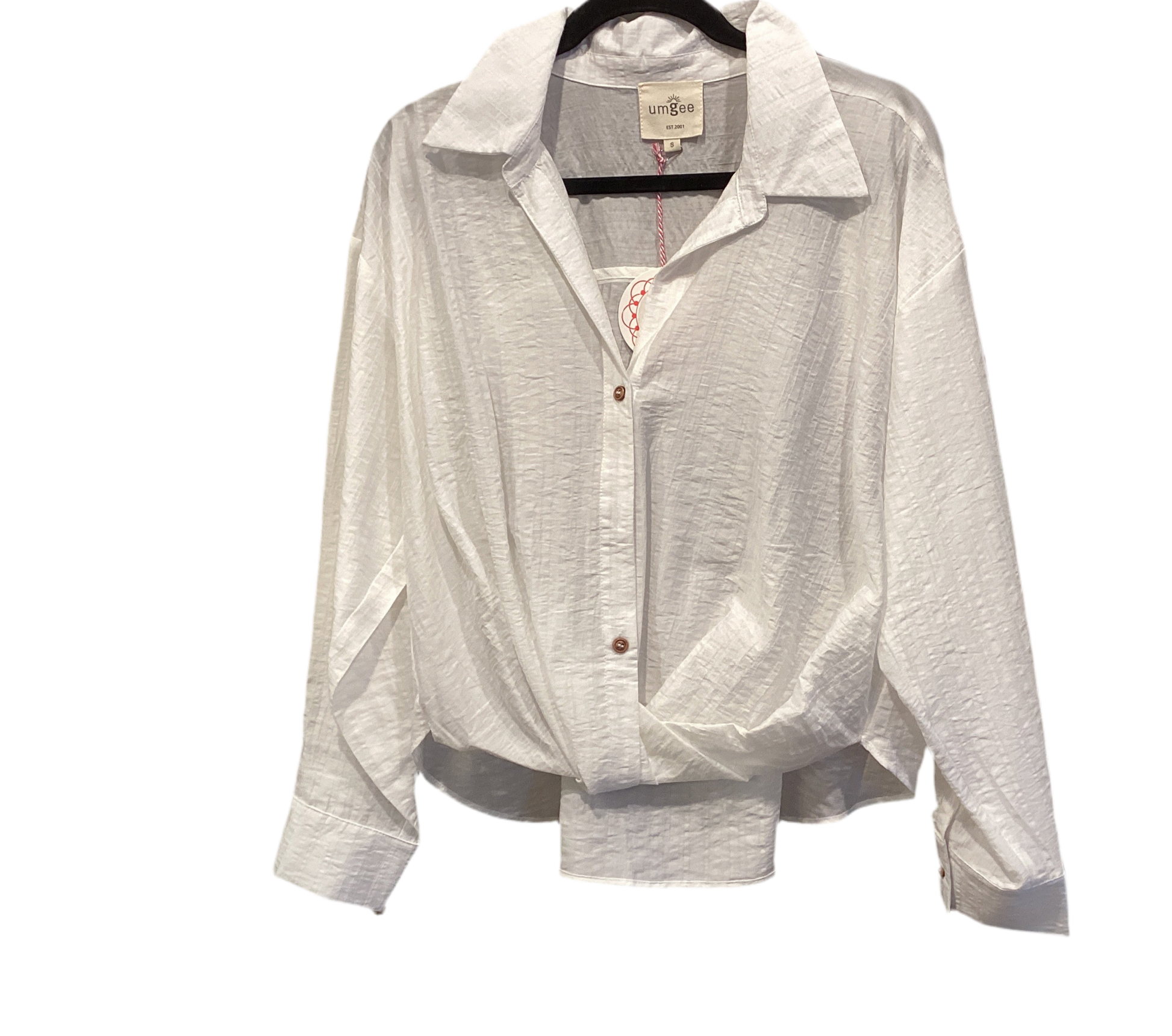 White waist length long sleeve button down top